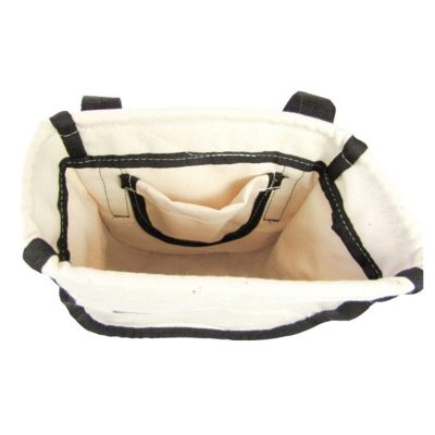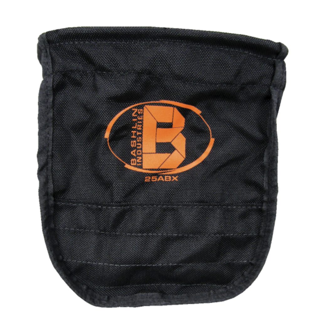 Bashlin bolt and nut bag with a reinforced top to stay open. No corners to lose hardware. Features an inside pocket. Secures to belt with two straps joined by snaps and D-Rings.