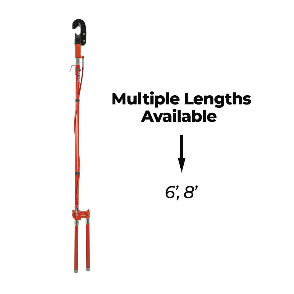 HYDRAULIC WIRE CUTTER – 954 ACSR G, A single lineworker can easily cut large-gauge conductors with the power-assist of this tool’s closed hydraulic system. It operates like a hydraulic jack, by simply pumping the handle.Epoxiglas® pole, handle and hydraulic hose have been tested to 100kV per foot. Hydraulic oil has dielectric strength of more than 25kV per ASTM D877. Hose has minimum burst strength of 12,000 psi. Pump provides 9,000 psi maximum pressure. Maintenance and operating instructions are included with each tool.