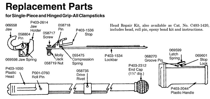 The most versatile tool in a lineworker’s hands, the Grip-All stick puts an easy-to-control “finger” on an insulated pole. Although primarily designed for installing hot-line and grounding clamps, it serves both overhead and underground circuits with various end fittings. Commonly called a “shotgun,” the operating mechanism incorporates a sliding hand grip that opens the hook to grasp a clamp eyescrew and retract it into the tool head. A thumb latch then must be depressed to release the locked hand grip so it can open the hook. While the tool head is of Lexan® for close-quarter operations, the worker must maintain recommended working distance solely on theEpoxiglas® pole section of the handle as the hook and its actuator are metal parts. Easy to care for, Grip-All sticks do not require field stripping to clean. All insulated parts including the operating rod are outside the main pole, readily accessible to wipe dry. CAUTION: Do not clean the plastic head with solvent.