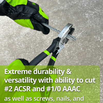 - Lineman Pliers cut #2 ACSR and #1/0 AAAC including screws, nails, and most hardened wire