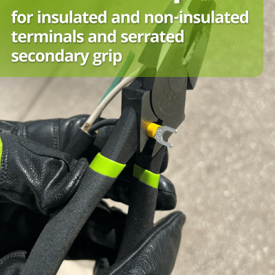 - Built-in crimper for insulated and non-insulated terminals and serrated secondary grip