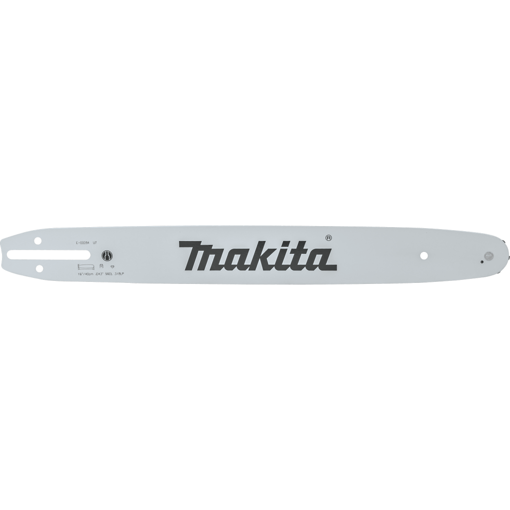 The Makita® 16″ Guide Bar is a commercial guide bar. It has a laminated body and is designed for use with low profile chains for increased cutting efficiency. The slim contour provides less weight and increased maneuverability. The small radius sprocket nose reduces the potential for kickback compared to standard-size noses. A narrow kerf helps the saw chain move through cuts faster than a standard kerf. It is ideal for use with the Makita® LXT® Cordless Chain Saws (XCU02, XCU03, XCU04, XCU07, XCU08, and XCU09, sold separately), Gas Chain Saws (EA3200SRBB, EA3201SRBB, EA3500SRDB, EA3601FRDB, and EA4300FRDB, sold separately), and Corded Chain Saws (UC3551A and UC4051A, sold separately).