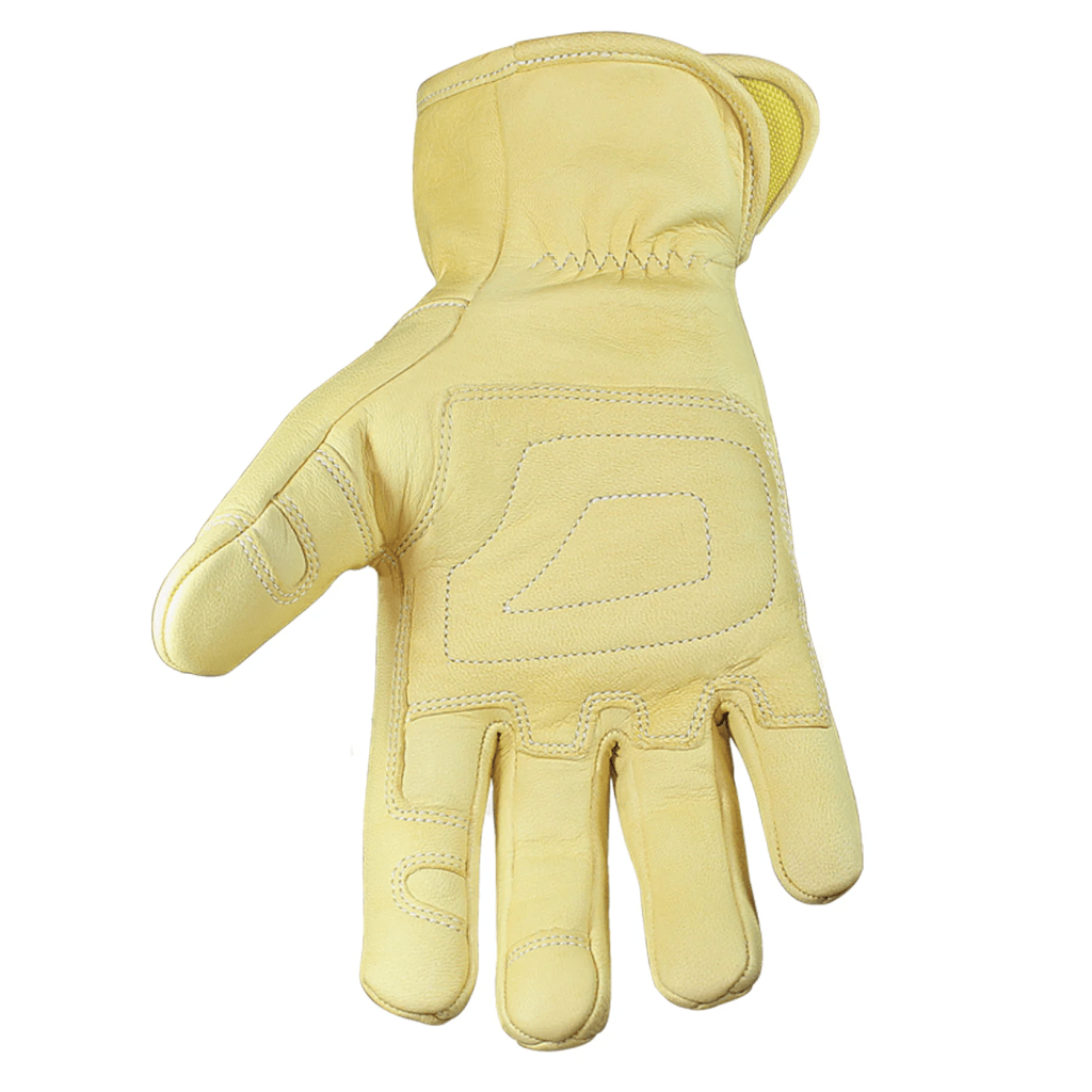 Youngstown’s FR Ground Glove is designed to provide total hand protection and lasting durability. We took our top selling Ground Glove model and lined every inch of the glove with 100% Kevlar® fiber by DuPont™. This combination not only offers cut and puncture resistance but it also makes the glove flame resistant and increases the arc rating. We attach the Kevlar® fiber directly to the leather to ensure there is no “sliding liner” feel or bunching. The palm, fingers and saddle are all reinforced with a second layer of leather to greatly enhance the durability of the glove. This glove is also ANSI Z49.1 compliant for welding applications. Youngstown’s highly protective FR Ground Glove is ideal for a wide range of applications and working environments as it is flame resistant, heat resistant, arc rated, cut resistant and puncture resistant.