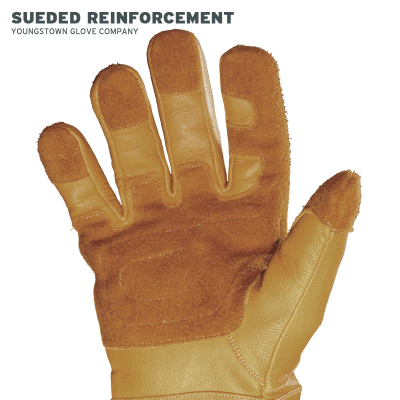 - Sueded leather reinforcement for superior grip